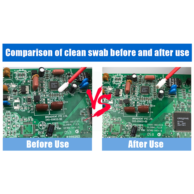 Các gạc bông polyester dệt kim có khả năng chống dung môi tuyệt vời và có thể duy trì sự ổn định trong nhiều môi trường hóa học khắc nghiệt. Điều này làm cho nó lý tưởng cho các nhiệm vụ như loại bỏ dư lượng băng, dầu bôi trơn dư thừa trên bảng PCB và súng làm sạch. Cho dù nó được sử dụng để loại bỏ các hạt nhỏ hoặc xử lý các thiết bị có độ chính xác cao, tăm bông polyester dệt kim có thể dễ dàng thực hiện công việc.